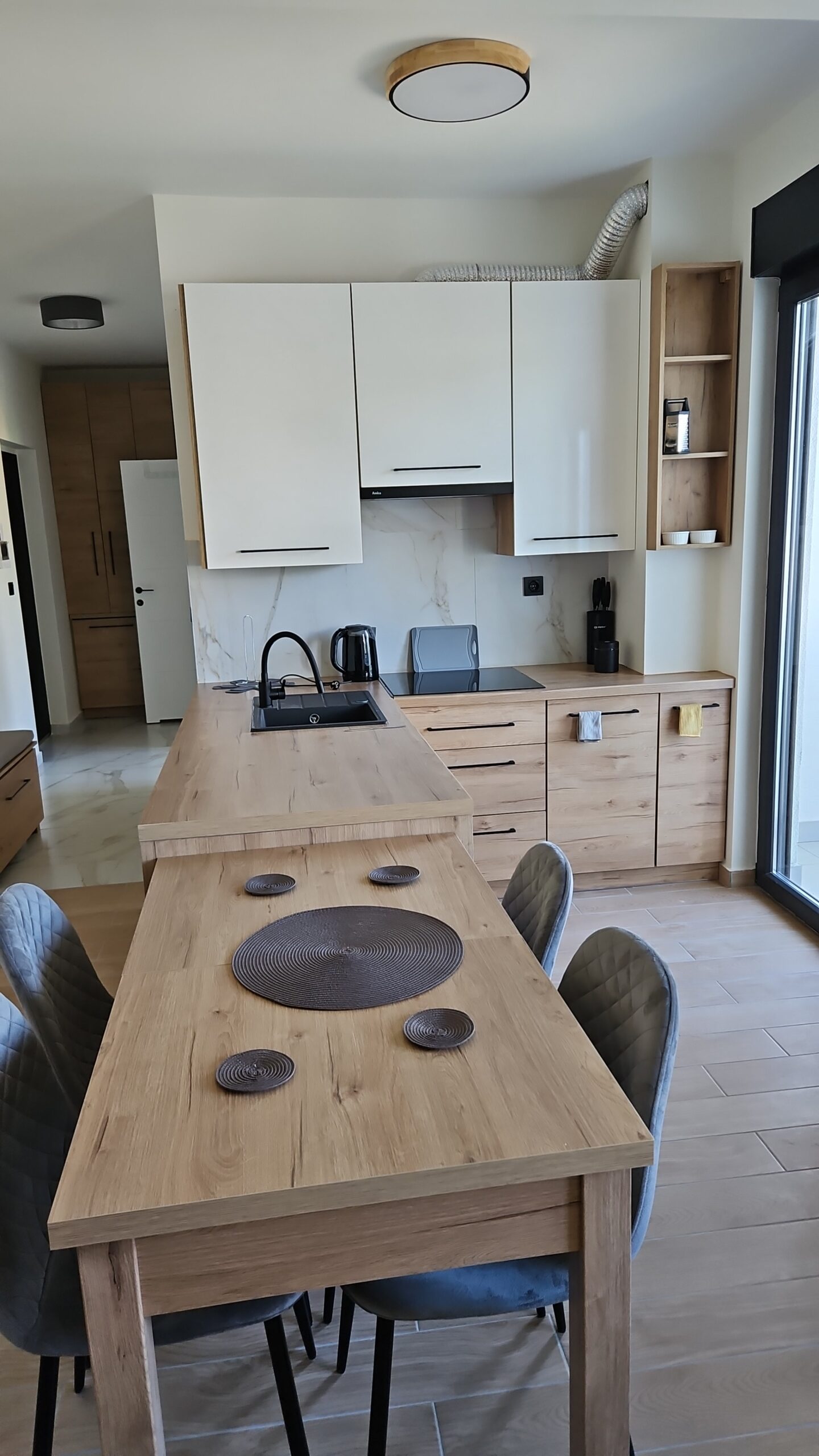 Słoneczny apartament na trzecim piętrze, przestronny i jasny, z dużą sypialnią. Kuchnia jest w pełni wyposażona. W salonie sofa rozkładana do wygodnego dwuosobowego miejsc