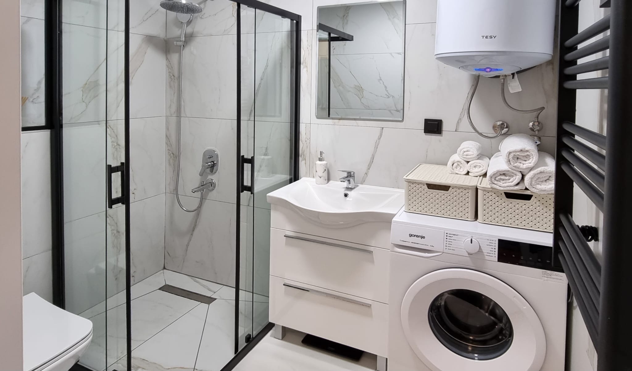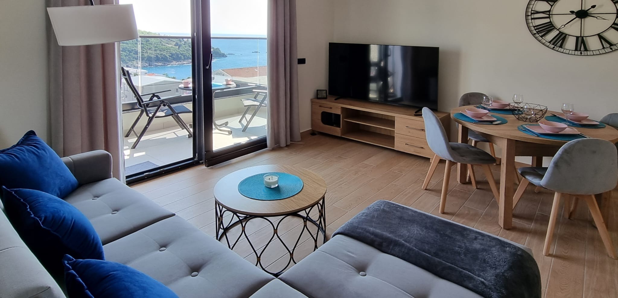 Piękny apartament na piątym piętrze z widokiem na morze. Apartament ma w pełni wyposażoną kuchnie. W salonie sofa z możliwością rozkładania do wygodnego łóżka dla dwóch osób. W sypialni podwójne łóżko (małżeńskie). Duży balkon.